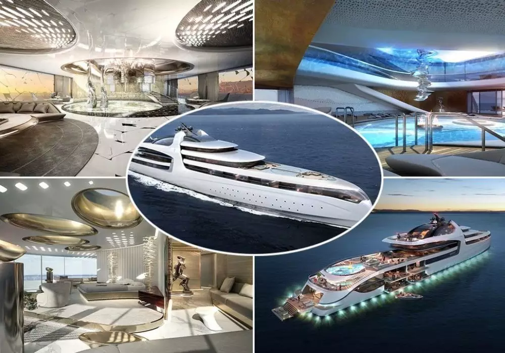 Два бассейна, два кинотеатра, две вертолетные площадки, гараж, несколько тренажерных залов. Двухуровневая пляжная SPA-зона размещена на корме и включает в себя внутренний и наружный бассейны, шезлонги, а также бар, но и это еще не все. Этой невероятной яхте действительно есть чем удивить своих гостей.