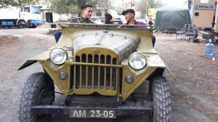 Санжар Мадиев в автомобиле ГАЗ-67 1942 года