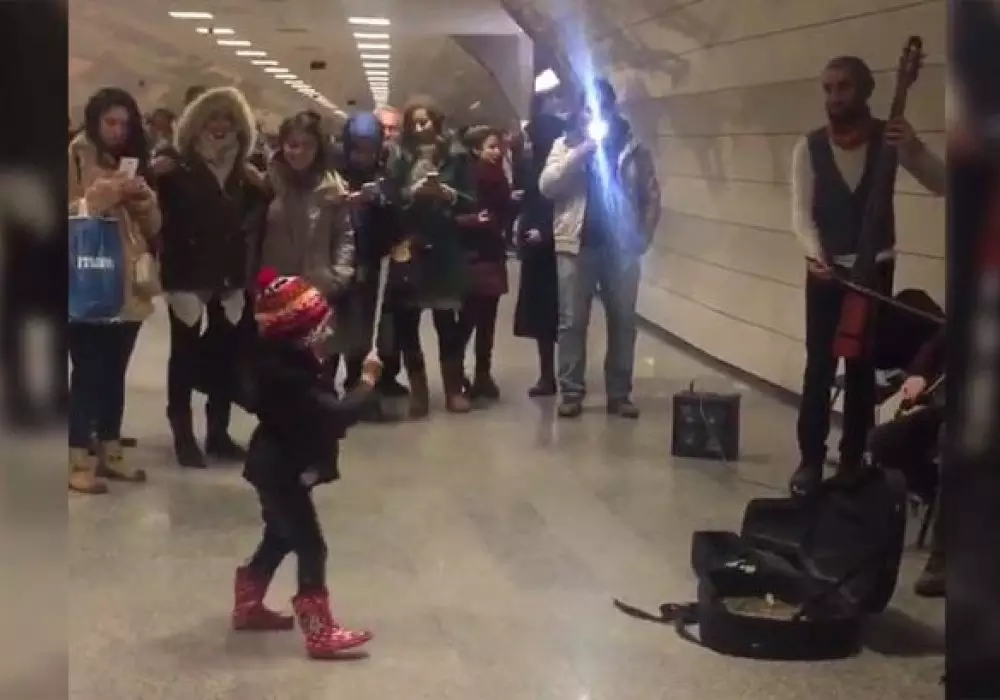 Случай произошел в Стамбуле, Турция, и, конечно, очевидно, что малышка не умеет управлять оркестром. Выбежав из толпы зрителей, она начала размахивать палочкой перед музыкантами, выступавшими в подземном переходе. Ребята оказались очень понимающими и решили подыграть юной зрительнице, старательно выполняя ее команды. Как ни странно, вместо шума у них получилась музыка.