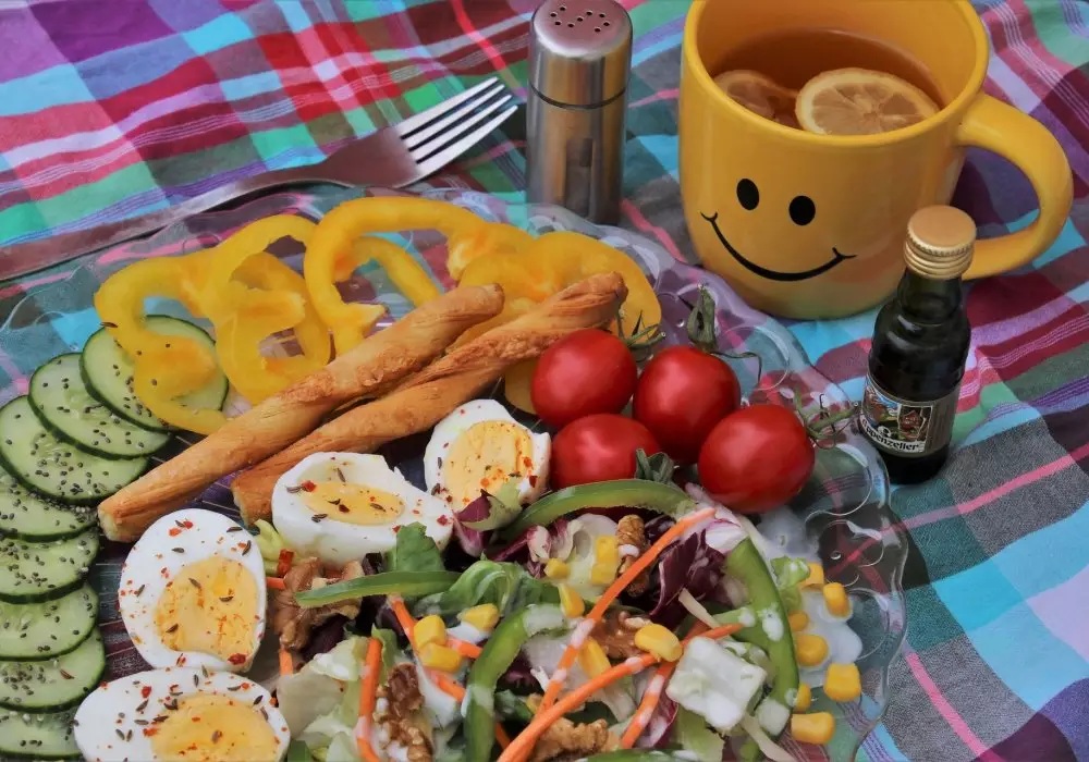 3. Станьте художником и превратите свои блюда в красочные картины с помощью различных желтых, красных и зеленых фруктов и овощей на протяжении всего дня. Желательно, чтобы они были свежими и чтобы их не опрыскивали вредными химикатами. Поэтому, если есть возможность, старайтесь сами выращивать фрукты и овощи на огороде.