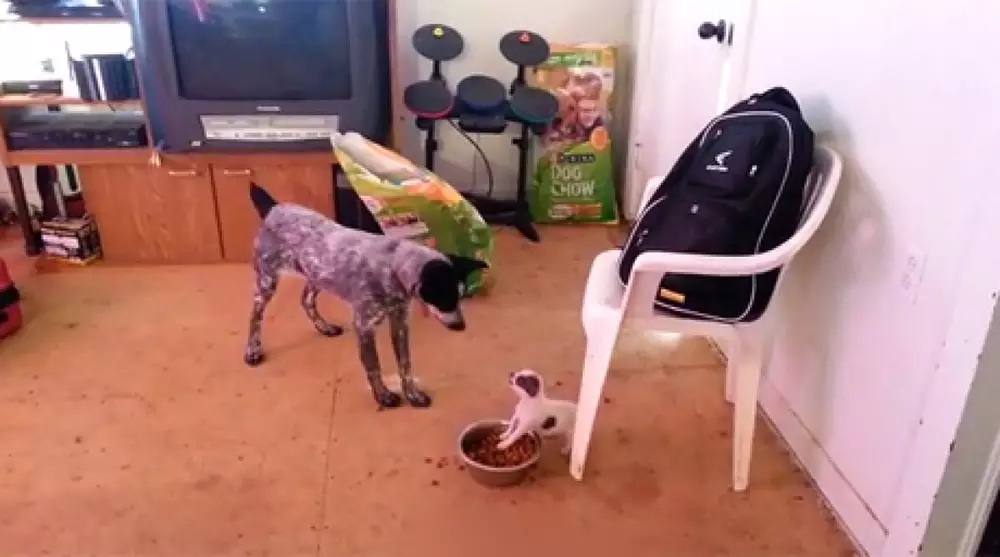 На видеохостинге YouTube выложили ролик, на котором запечатлена самоотверженная битва щенка по кличке Сэди со своим более "габаритным" собратом. Смелая Сэди защищает свою миску с едой и не дает шанса Фокси хоть как-то к ней приблизиться. Решительный настрой щенка отпугнул пса по кличке Фокси. Почти двухминутная битва за миску закончилась капитуляцией Фокси.