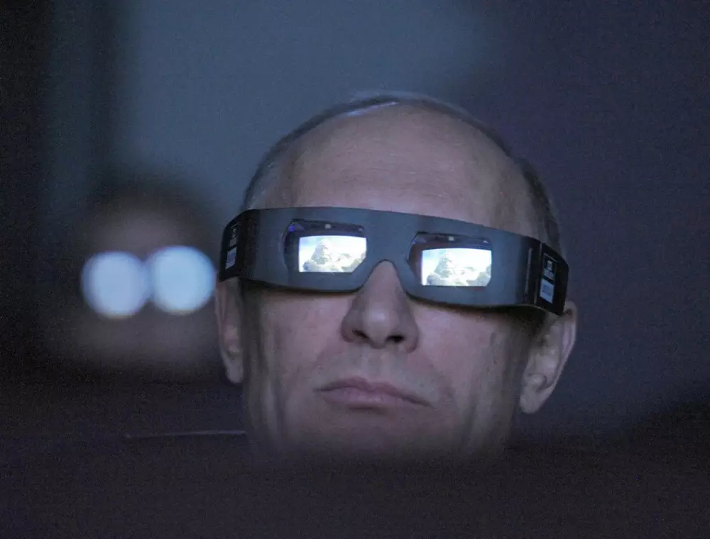 Путин смотрит не в бинокль, потому что его зрение намного мощнее этого бинокля.