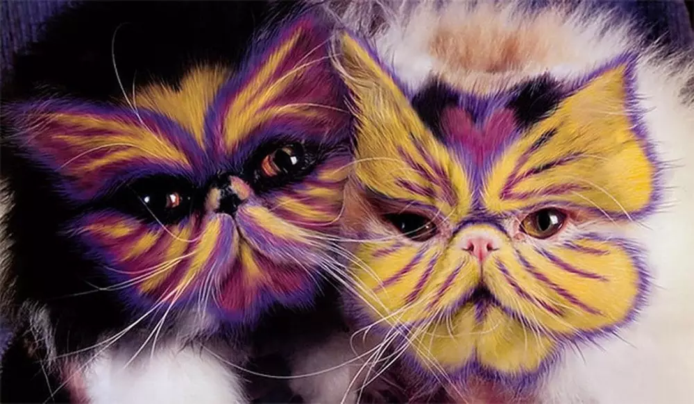 Если вам не нравится цвет вашей кошки, просто покрасьте ее. Такое смелое заявление сделали художница Хизер Буш и писатель Бертон Сильвер, выпустив в далеком 1994 году совместную книгу с фотографиями раскрашенных кошек. Идея вызвала бурную реакцию общественности, а иллюстрации из книги до сих пор гуляют по Сети, вызывая споры и самую разную реакцию - от возмущения до умиления. Позднее авторы скандальной книжки признались, что ни одно животное на фотографиях не пострадало: всю работу по их раскрашиванию авторы проделали в фотошопе.