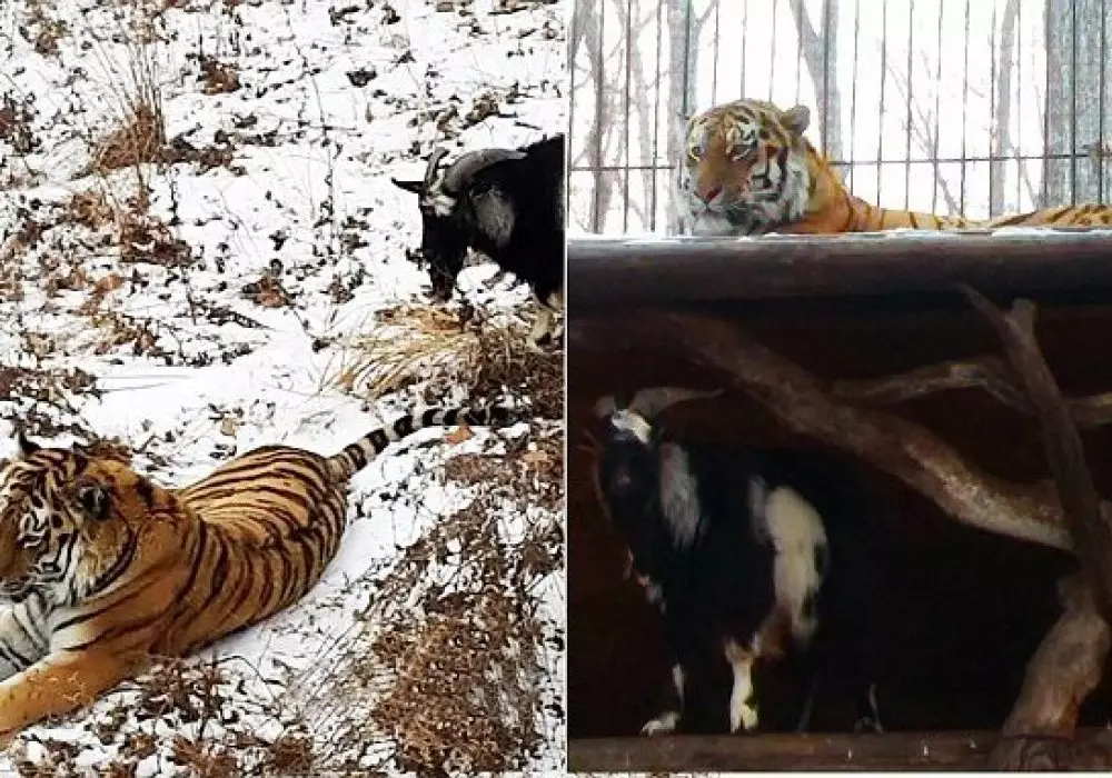 "Однажды был такой случай, что тигр не стал есть козла, когда тот дал ему отпор, но животного хватило на сутки - козел дал слабину, и хищник убил его одним ударом. Но тут другая ситуация. Тимур всюду ходит за Амуром, а тигр спокойно его терпит. Козел даже волнуется, когда тигр пропадает из поля его зрения, и тут же начинает его искать", - добавил Мезенцев.