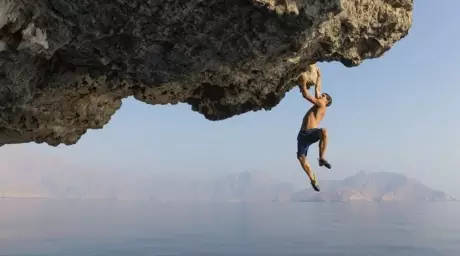 Альпинист Алекс Хоннолд на скале полуострова Мусандам, Оман.