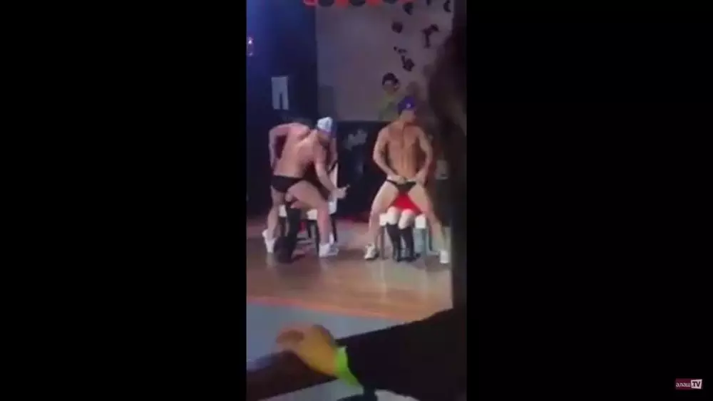 На видео показан фрагмент потасовки, устроенной одним из клиентов. Парень набросился с кулаками на стриптизера, который спустил штаны перед сидящей на стуле девушкой. Охрана тут же скрутила молодого человека, а само представление закончилось. Как предположили комментаторы, девушкой была либо подруга, либо сестренка парня.