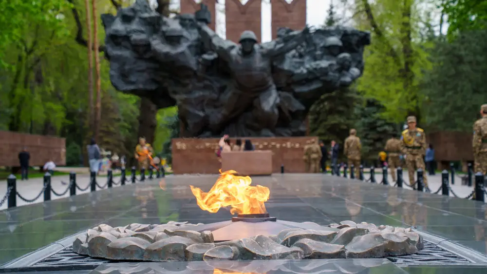 8 мая в 09:00 - возложение цветов к Братской могиле участников Великой Отечественной войны (проспект Райымбека, 235).