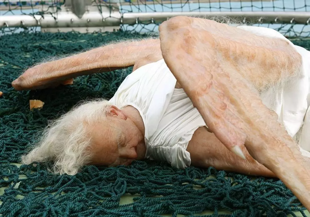 Пекинские художники Сун Юань (Sun Yuan) и Пен Ю (Peng Yu) создали скульптуру под названием "Ангел", которая поражает своей гиперреалистичностью, вызывая в то же время неоднозначные чувства при просмотре.
