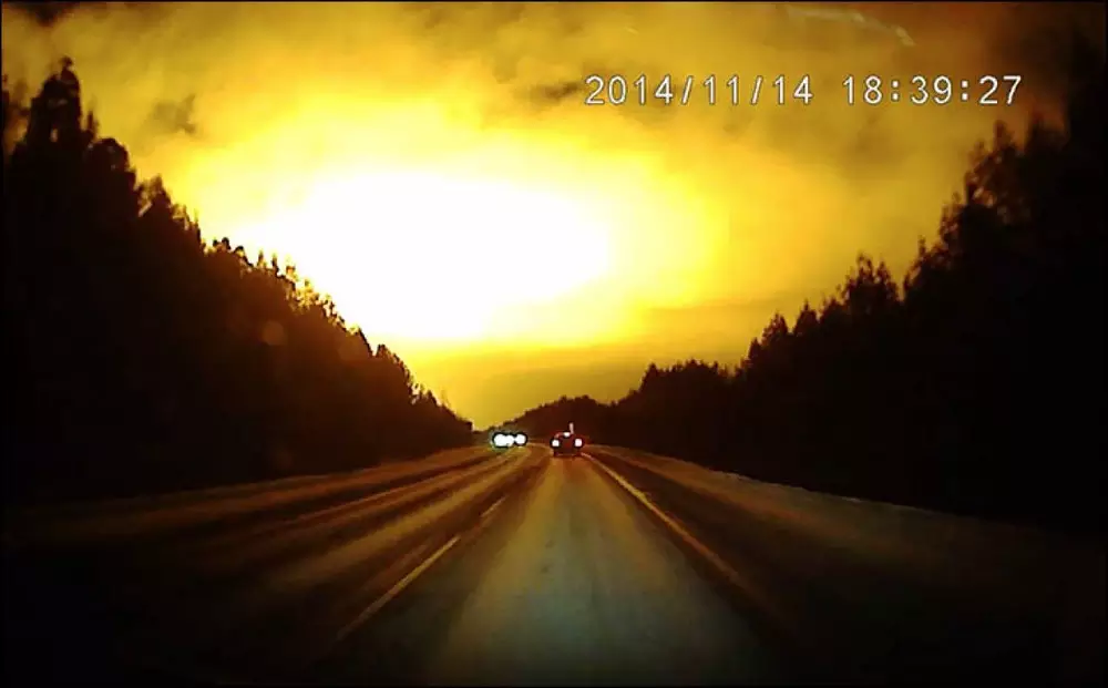 Необычную вспышку в небе недалеко от Екатеринбурга зафиксировал видеорегистратор одного из автолюбителей. Инцидент произошел вечером 14 ноября, однако запись была обнародована лишь спустя несколько дней.