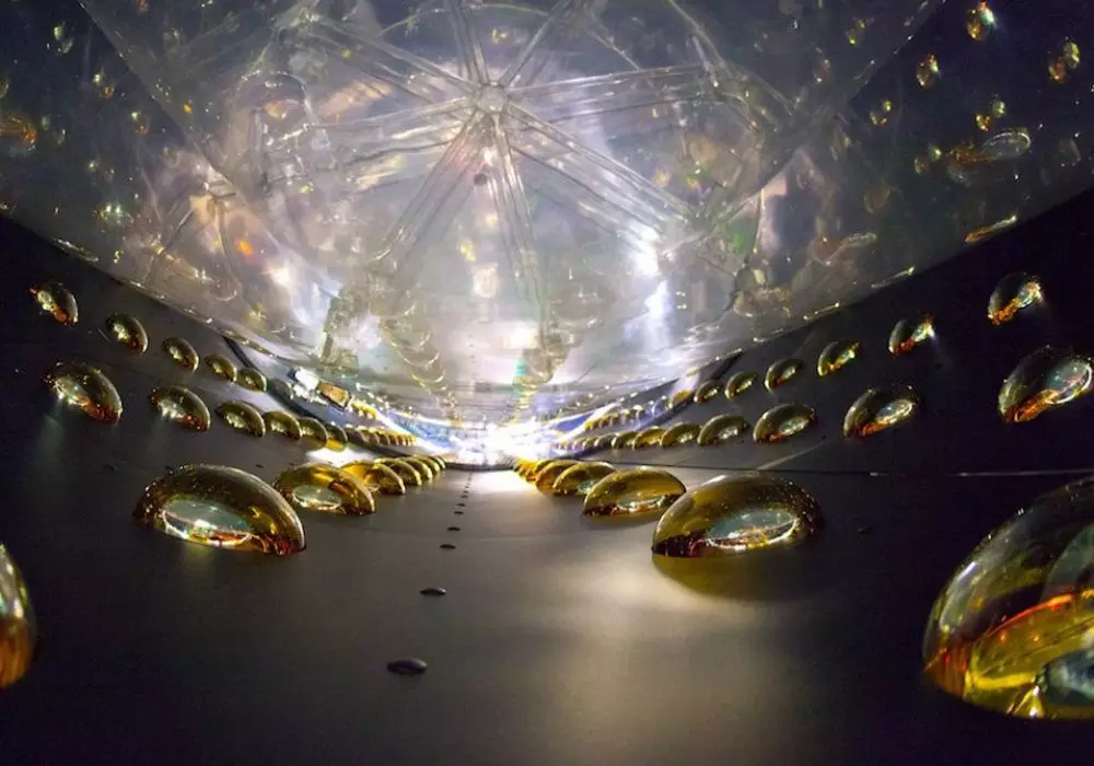 Нейтрино-эксперимент проходит сразу в трех огромных залах, захороненных на холмах Дайя-Бей, Китай. Шесть цилиндрических детекторов, каждый из которых содержит 20 тонн жидкого сцинтиллятора, сгруппированы в залах и окружены 1000 ФЭУ. Они тонут в бассейнах чистой воды, блокирующей любую окружающую радиацию. Соседняя группа из шести ядерных реакторов штампует миллионы квадриллионов безвредных электронных антинейтрино каждую секунду. Этот поток антинейтрино взаимодействует с жидким сцинтиллятором, чтобы излучать короткие вспышки света, которые подхватываются ФЭУ. Дайя Бэй построен для исследования осцилляции нейтрино.
