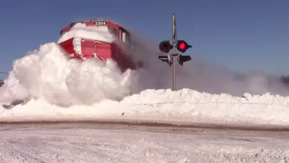 Любительский ролик, запечатлевший движение товарного поезда, который прокладывает себе колею в плотном снегу, стал хитом YouTube. Видео, снятое в канадской провинции Нью-Брансуик, за три дня собрало почти 2,8 миллиона просмотров.