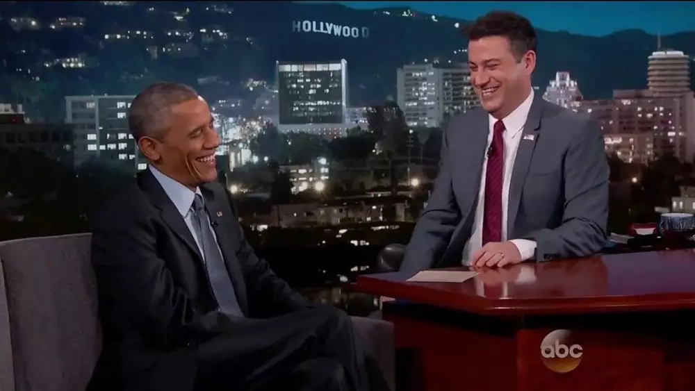 Президент США Барак Обама принял участие в популярном телевизионном шоу Jimmy Kimmel Live на канале ABC. Американский лидер прочитал о себе "злые твиты", обсудил историю с электронной почтой Хиллари Клинтон, ответил на вопрос, водит ли он автомобиль и заходит ли ночью в трусах на кухню, чтобы перекусить. Также ведущий программы спросил Обаму по поводу "Зоны-51" и инопланетян. Диалог перевел и озвучил Андрей Бочаров.