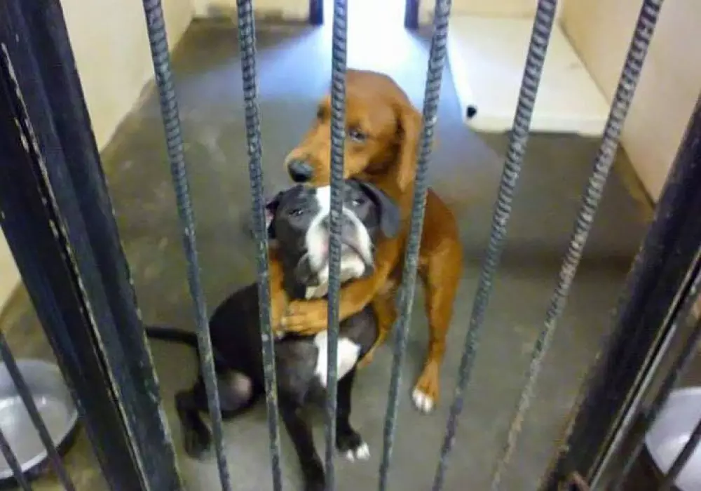 Двух собак должны были усыпить. В Интернет попала фотография, где одна собака обнимает другую. Спустя всего два часа после публикации фото в Facebook Кэла и Кира нашли себе новых хозяев, тем самым они спаслись от верной смерти.