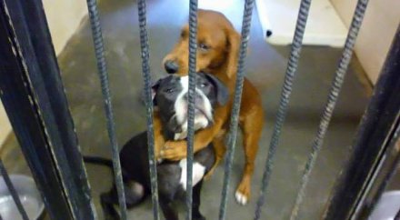 Двух собак должны были усыпить. В Интернет попала фотография, где одна собака обнимает другую. Спустя всего два часа после публикации фото в Facebook Кэла и Кира нашли себе новых хозяев, тем самым они спаслись от верной смерти.