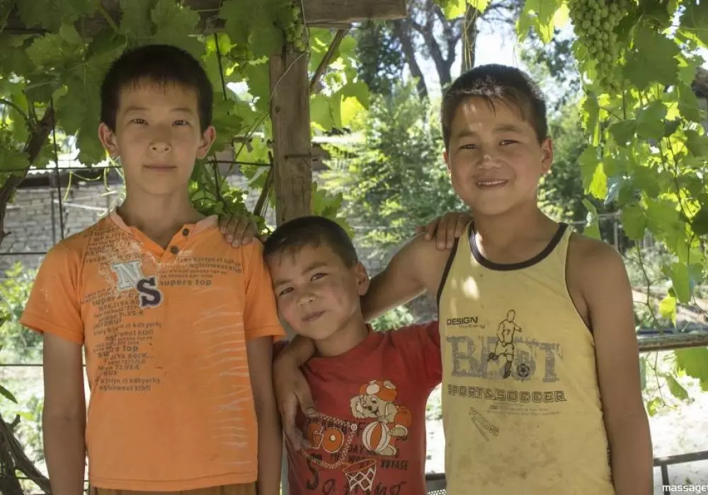В поход за яблоками отправились три мальчугана. Один из них - Жанай. Ему семь лет.