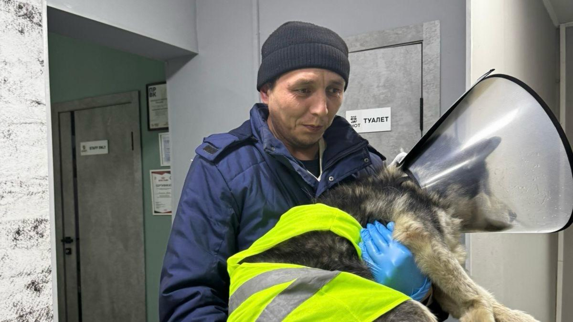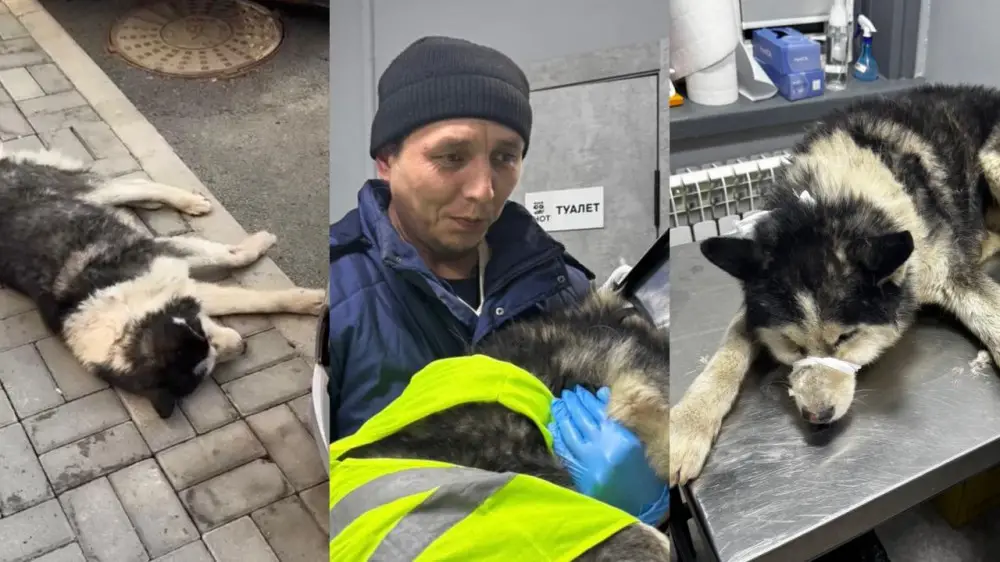 Пятым откликнулся водитель по имени Медет. Он поднял собаку и отвёз её в клинику, где животное осмотрели врачи. Таксист помогал удерживать раненого хаски во время осмотра, а затем вместе с Гульжан отвёз собаку домой.