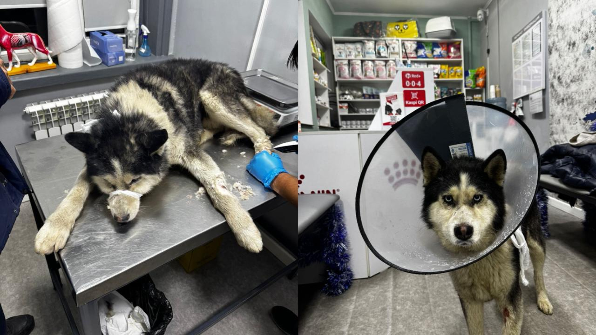 Ветеринар сообщил Гульжан, которая принесла бездомную собаку в клинику, что серьёзных проблем со здоровьем у животного нет. При этом у хаски обнаружили рану на лапе, гематомы и царапины на морде, а также предупредили, что собаку нельзя держать на холоде.