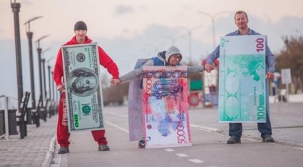 Также автор опубликовал одно фото со съемок видеоролика. Снимок пародирует знаменитую сцену из кинофильма "Кавказская пленница". В нашем варианте в главных ролях - доллар, тенге и евро.