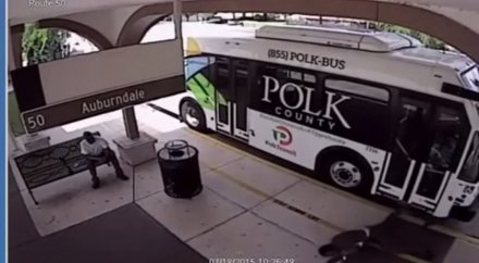 В Интернете набирает популярность видео, на котором запечатлено, как житель американского штата Флорида, возмущенный тем, что водитель потребовал у него дополнительные два доллара за проезд, решил отомстить. Американец разбежался и со всего размаху влетел в закрытые двери автобуса.