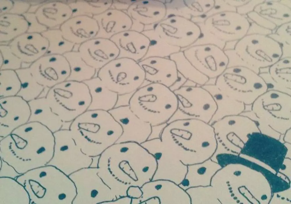 Венгерский художник Гергели Дудаш (Gergely Dudás) на днях опубликовал на своей странице в Facebook рождественскую головоломку, скрыв одного черно-белого медведя среди сотен нарисованных снеговиков.