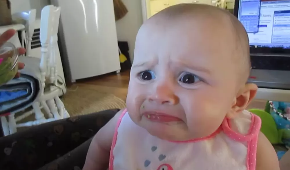 Мама впервые дает своему ребенку авокадо. Его реакция на новый вкус неподражаема.