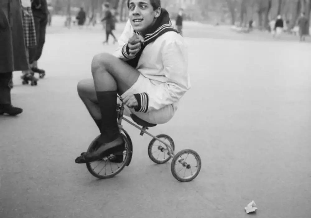Адриано Челентано на трехколесном велосипеде, 1955 год.