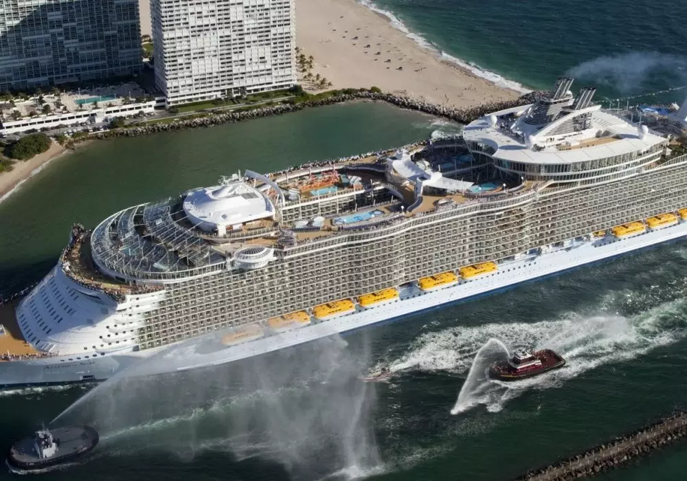 Рассказывает блогер Сергей Доля: "Представьте себе квартал Лас-Вегаса, который плывет из города в город. Представьте корабль на 7500 человек, из которых 2500 - сотрудники и персонал. Добавьте к ним ледовый каток, волейбольные и баскетбольные площадки, поле для гольфа, зал для боулинга, стены для скалолазания, фитнес-центр, SPA-салон, бесконечные бассейны и вы получите самый большой круизный лайнер в мире - Allure of the Seas".