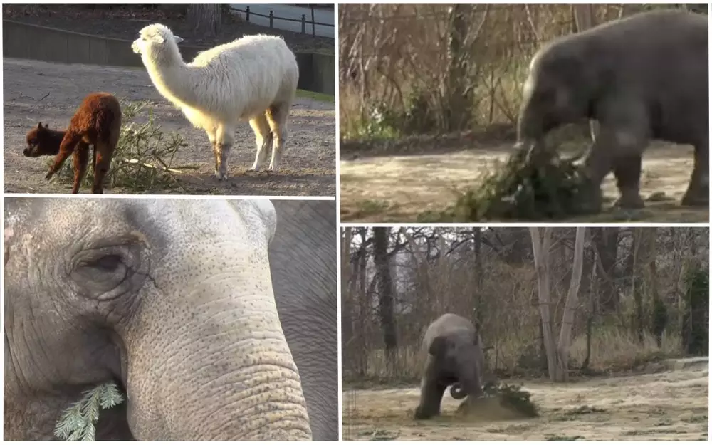 В Берлинском зоопарке двухлетний слоненок Анхали и шестеро его сородичей поиграли с рождественскими елями, а затем и полакомились ими, сообщает RT.