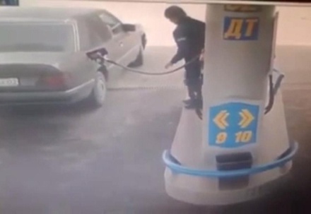 Сотрудник одной из автозаправочных станций вдруг решил исполнить акробатический номер. Смотрим, что из этого вышло.