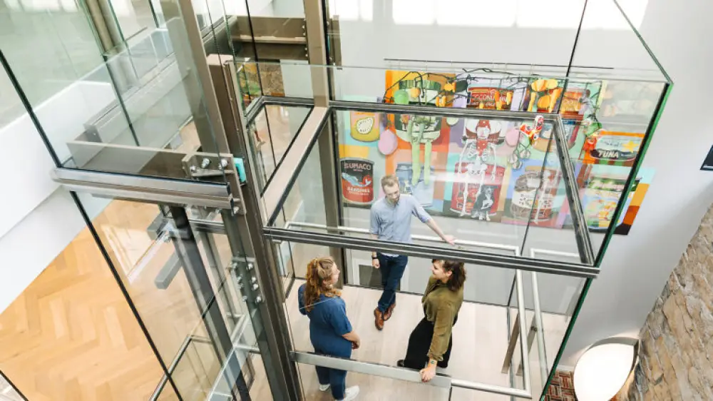 Музей LAM известен тем, что демонстрирует свою международную коллекцию не только на стенах и пьедесталах, но и в необычных местах. Банки Лаве были выставлены внутри стеклянной шахты лифта музея, как будто их оставили рабочие после ремонта.