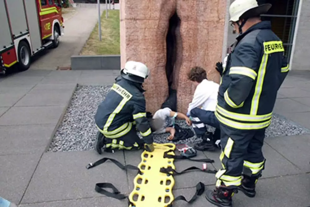 Парень не смог самостоятельно выбраться из мраморного изваяния вагины. Пришедшие на помощь прохожие также не сумели вызволить его из ловушки. К операции по спасению подключились 22 пожарных. Им удалось достать студента из 32-тонного монумента без использования специальных инструментов. Таким образом, скульптура стоимостью порядка 120 тысяч евро не была повреждена.