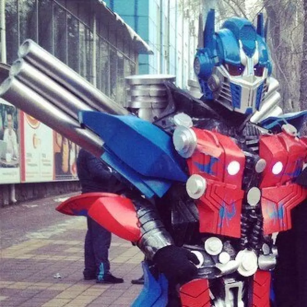 Авторы косплея неизвестны, однако на фото видно, что костюм Оптимуса Прайма сделан довольно качественно. Судя по комментариям алматинцев, снимки сделаны в районе барахолки и "Тастака".