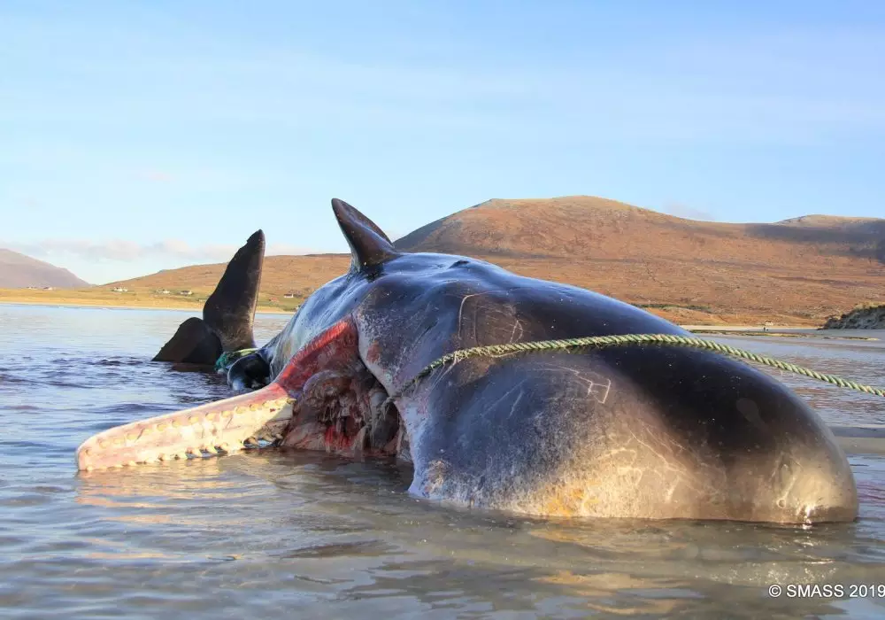 Кашалота нашли на берегу Сейлболст шотландского острова Гаррис. Пост об этом появился на официальной странице "Охраны шотландских морских животных" (Scottish Marine Animal Strandings Scheme) в Facebook. Когда до кита добрались экологи, 20-тонный кашалот уже был мертв.