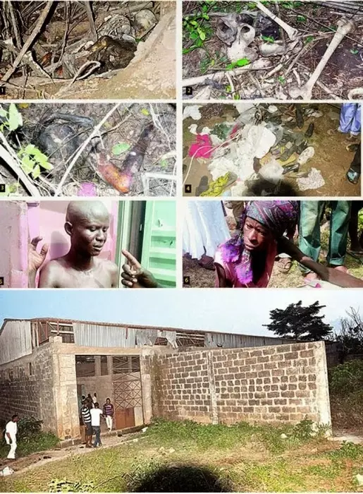 В городе Ибадан на юго-западе Нигерии полицейские сделали жуткую находку. В заброшенном доме были обнаружены человеческие черепа, скелеты, кровь, разлагающиеся органы и расчлененные тела, а также несколько живых людей, прикованных кандалами. Как сообщил AFP представитель полиции, люди были настолько истощены, что походили на живые скелеты.