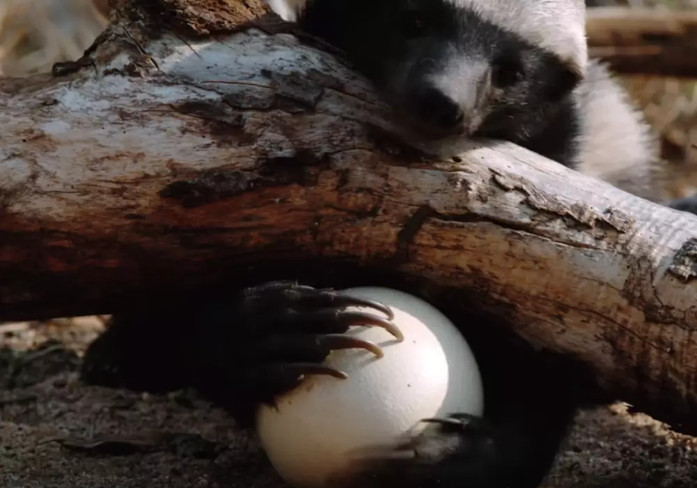 На видео ниже, опубликованном на официальном канале Смитсоновского университета, медоед пытается справиться с нежданной, но желанной добычей - страусиным яйцом. Внушительный размер и очень прочная скорлупа весьма усложнили процесс, однако медоед оказался не без смекалки.