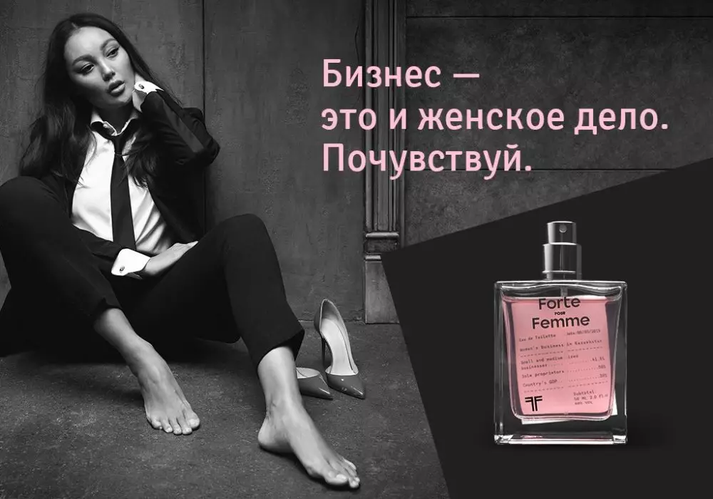 Новый проект банка поражает своей смелостью. В рамках проекта "Бизнес – это и женское дело" ForteBank выпустил аромат Forte pour Femme – "Сильная женщина". Последнюю неделю февраля парфюм наносили на деньги, которые зарабатывают женщины в бизнесе, и запускали в оборот через банкоматы и кассы ForteBank.