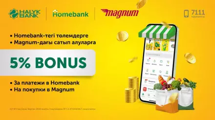 В знак благодарности к своим клиентам за поддержку и лояльность Halyk Bank запустил выгодные акции. Клиенты могут получить повышенные бонусы при оплате всех услуг и сервисов в приложении Homebank и при оплате покупок в супермаркетах Magnum.