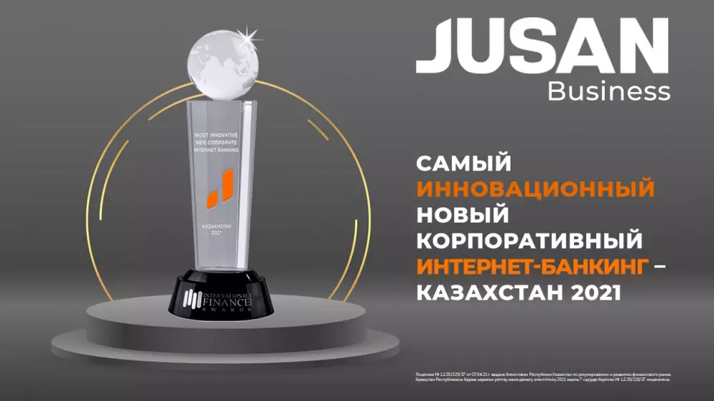 Награда Most Innovative New Corporate Internet Banking - Kazakhstan 2021 - "Самый инновационный новый корпоративный интернет-банкинг – Казахстан 2021" была присуждена банку за успешную разработку и внедрение интернет-банкинга для корпоративных клиентов Jusan Business. Лонч продукта состоялся в декабре 2020 года, и менее чем за полгода среди клиентов банка он стал востребованным инструментом для ведения финансов бизнеса любого масштаба - от индивидуальных предпринимателей до крупных организаций. Для клиентов банка подключение к системе и ее дальнейшее использование абсолютно бесплатны. Благодаря максимально автоматизированной системе и удобному функционалу количество пользователей постоянно растет и в настоящее время уже превышает 26 тысяч компаний.
