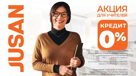 В-третьих и в-главных, по карте Jusan Pay учителя могут получить беспроцентный кредит в размере заработной платы сроком до 1 месяца!