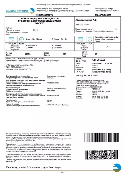 Сервис "Электронный билет" реализует совместно АО "НК "Қазақстан темір жолы", дочернее АО "Пассажирские перевозки" и филиал национальной компании "Центр информационных технологий".