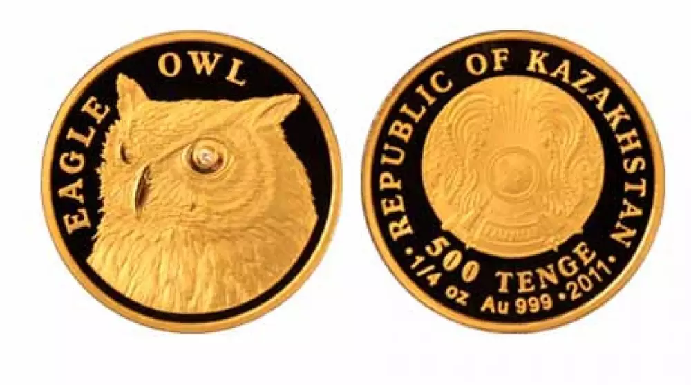 Монету "Филин" с бриллиантовой вставкой выпустил Нацбанк Казахстана Памятная золотая монета "Филин"