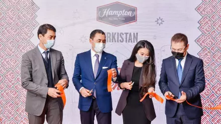 В церемонии открытия отеля приняли участие первый заместитель акима области Арман Жетпiсбай, аким Туркестана Рашид Аюпов, председатель совета директоров BI Group Айдын Рахимбаев и генеральный менеджер Hampton by Hilton Turkistan Анар Байболова.