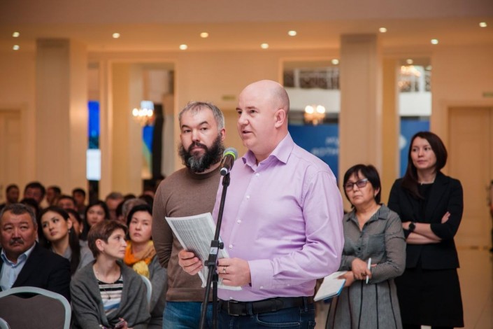 Для чего BI Group приглашает жителей, если дом уже сдан и основная работа закончена? "Мы делаем это сознательно, потому что покупка квартиры - это не просто договор, это большое событие в каждой семье. Мы встречаемся с клиентами во время заселения в дом, ведь это самое хлопотное время. Очень много вопросов к строителям и сервисному обслуживанию. Сегодня мы собрались для получения обратной связи, обсуждения наболевших вопросов и проблем. Мы сталкиваемся с проблемами, которые нужно решить. Кроме нас этого никто не сделает. Добро пожаловать на форум клиентов!" - сказал А. Рахимбаев.
