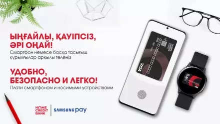 Затем просто скачайте Samsung Pay на телефон и привяжите вашу карту к Samsung Pay через мобильное приложение Home Credit Bank Kazakhstan.