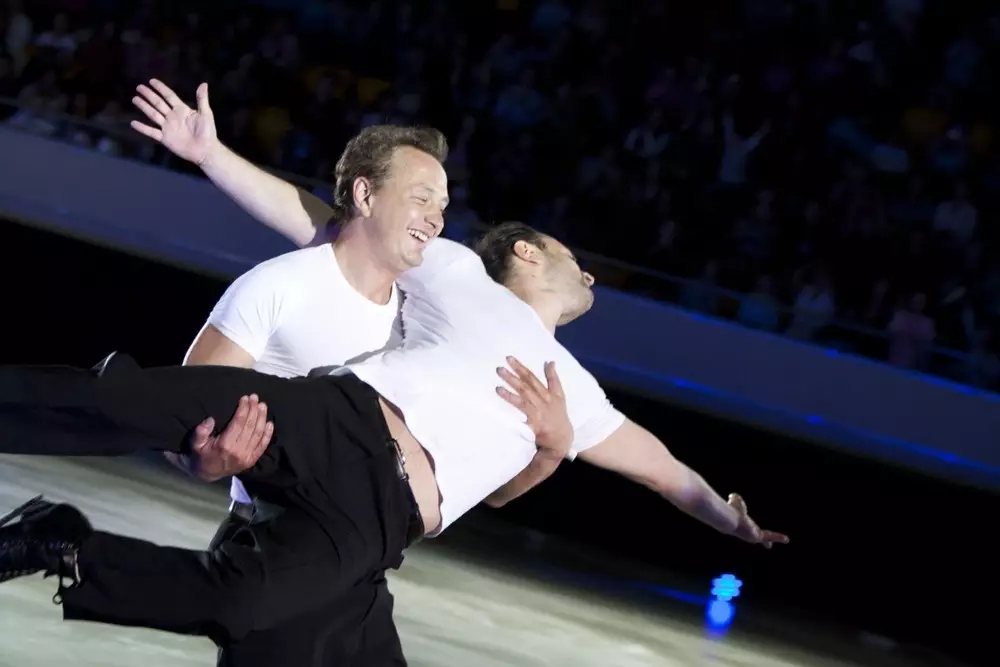 Победитель проекта "Звезды на льду" Башаров и его соведущий Авербух не смогли согласовать, кто объявит следующий номер, "повздорили" и решили выяснить, кто из них лучший ведущий. "Ты не смеешь оскорблять меня здесь, в мусульманской стране, и я вызываю тебя на дуэль", - заявил Башаров. Пятиминутное выступление на льду стало одним из самых запоминающихся номеров всего вечера.