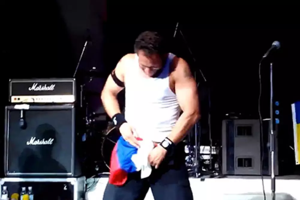 Гитарист Bloodhound Gang подтерся российским флагом Кадр из видео с сайта YouTube