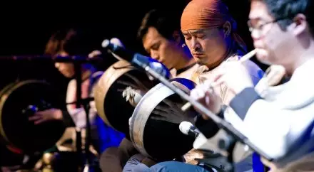 Зрителям представится уникальная возможность познакомиться с экзотическими корейскими инструментами - барабаном в форме песочных часов чангу, двусторонним барабаном бук, большим металлическим гонгом чин и маленьким металлическим гонгом. Исполняемая на этих ударных инструментах традиционная крестьянская музыка в репертуаре музыкального коллектива сопровождается комбинацией шаманских ритмов и популярных песен.