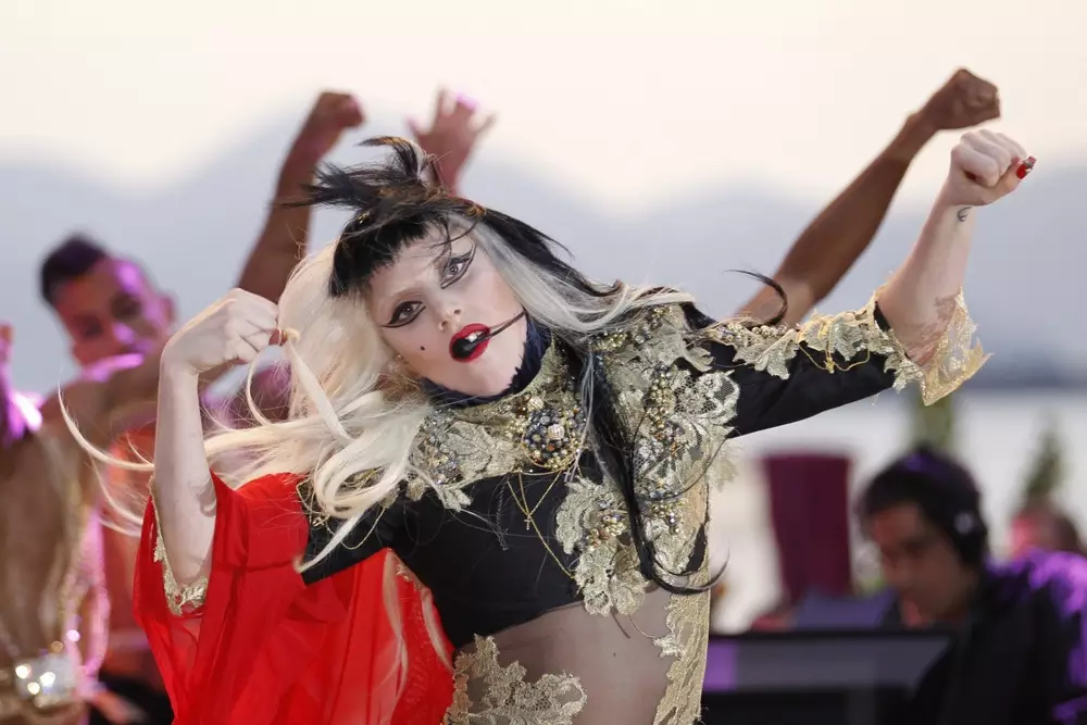 Свое выступление на мероприятии Lady Gaga начала с выхода на сцену в гробу. Исполнив несколько композиций, она обратилась к публик и сказала, что следующую песню посвящает британскому принцу и его супруге. "Кейт шла одна, думая о своих делах и напевая мелодию, когда в свете неба оранжевого света встретила принца", - спела Lady Gaga.