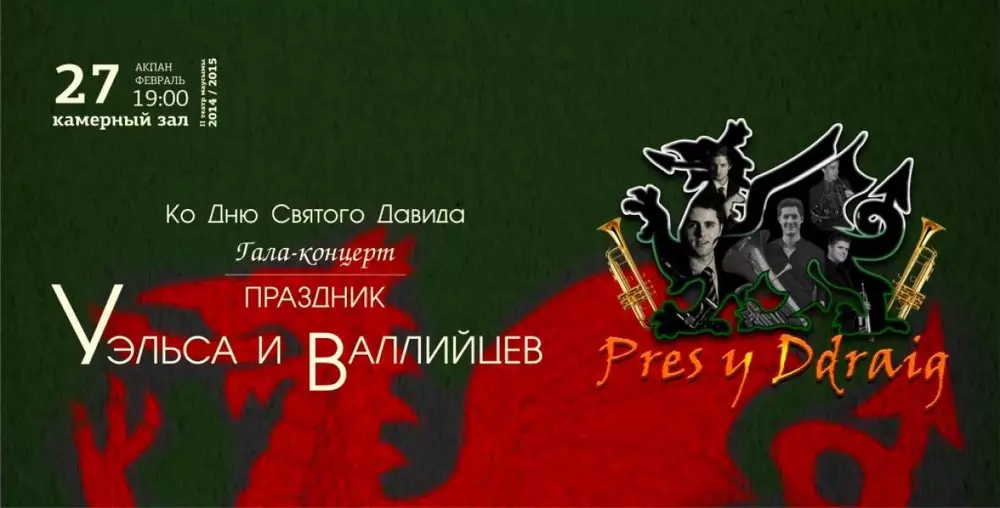 Отметим, что ежегодно 1 марта валлийцы проводят парады, посвященные национальному Дню Уэльса. В парадах принимают участие солдаты Королевского валлийского полка, а также простые жители Уэльса. В "Астана Опера" вечер начнется с арфы. Дирижер Росс Кларк рассказал, что во время концерта прозвучит известное сочинение, которое будет исполнено детским хором.