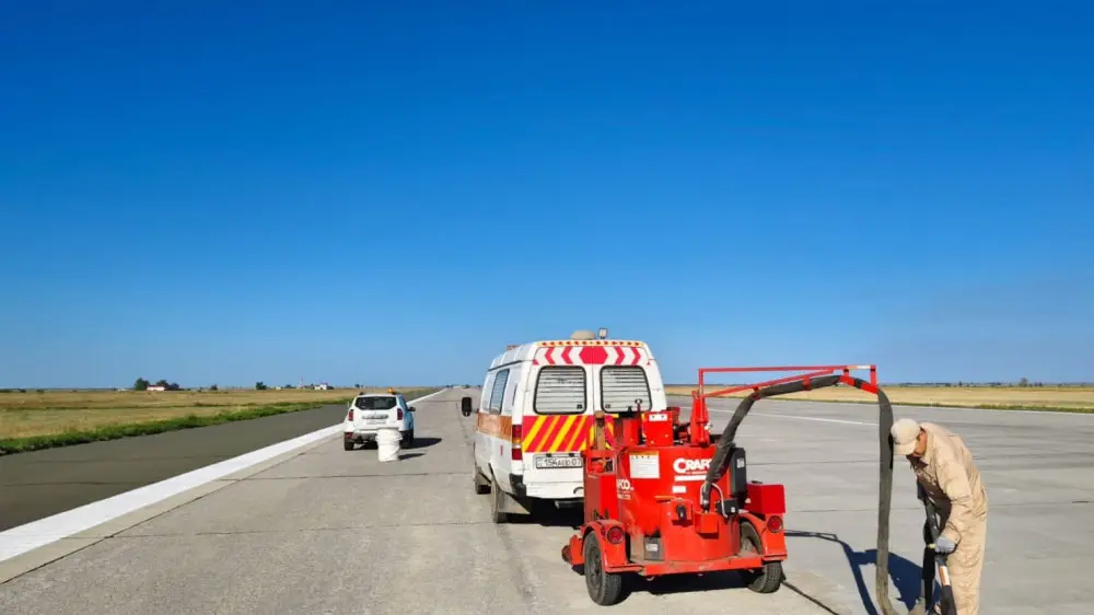 По данным пресс-службы, работы ведутся специалистами аэропорта, а также сотрудниками специализированной организации "ОралЖолСтрой". Уже была проведена зачистка швов.